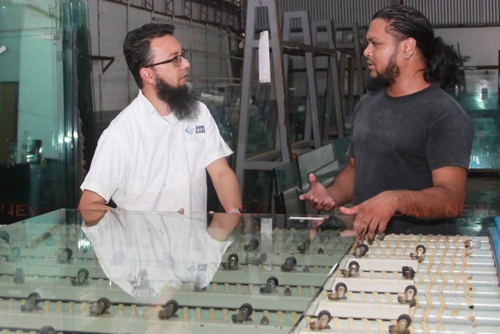 Workers of Kamri Glass in Marabella build UPVC vents.